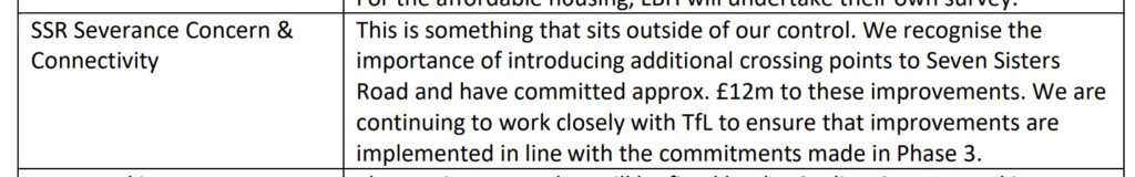 Improvements to Seven Sisters Road were approved (in principle) as part of the last Woodberry Down Masterplan. As you know, this is currently under review.